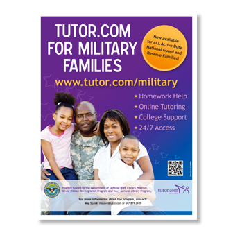 Tutor.com relies on recommendations and support of people like you to spread the word about the Tutor.com for U.S. Military Families program. For additional information please e-mail militarysupport@tutor.com.