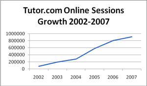 NEW YORK, January 29, 2008 - Where are kids going online to get help with everything from Algebra I to AP Physics? In 2007, students turned to Tutor.com, the largest online tutoring service with over 2,200 tutors, over 845,000 times to get the help they needed, the minute they needed it. Seven days a week, 24 hours a day, Tutor.com connects a student with a real, live tutor within just minutes to get homework done, prepare for exams and go to school prepared and ready to learn. The demand for instant online tutoring and homework help has increased over 1,000% over the past five years.
