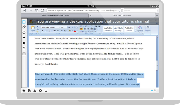 Our online classroom has tools that make getting help with your essays easy. A two-way interactive whiteboard lets you brainstorm ideas with your tutor, or decide on vocabulary, voice, and tone. Using our file sharing tool, you can edit essays and papers in real-time.